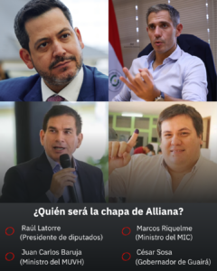 El exsenador sostuvo que en Honor Colorado hay otras figuras que buscan proyectarse “ante la debilidad de Alliana”: Raúl Latorre, presidente de la Cámara de Diputados; César Sosa, gobernador de Guairá; Juan Carlos Baruja, ministro del MUVH; y Marco Riquelme, ministro del MIC.