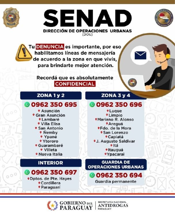 Una de las principales garantías ofrecidas por la SENAD es la confidencialidad absoluta de los denunciantes. Ayala aseguró que estas líneas están manejadas directamente por asistentes especiales e investigadores, quienes se dedican exclusivamente a esta área.
